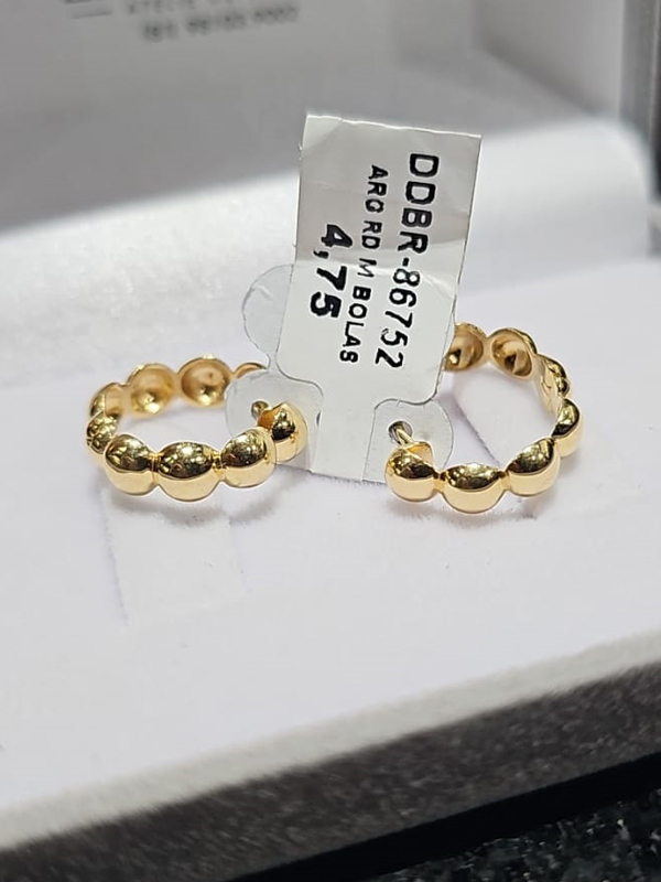 Brinco argolas médias bolas de ouro amarelo 18K.